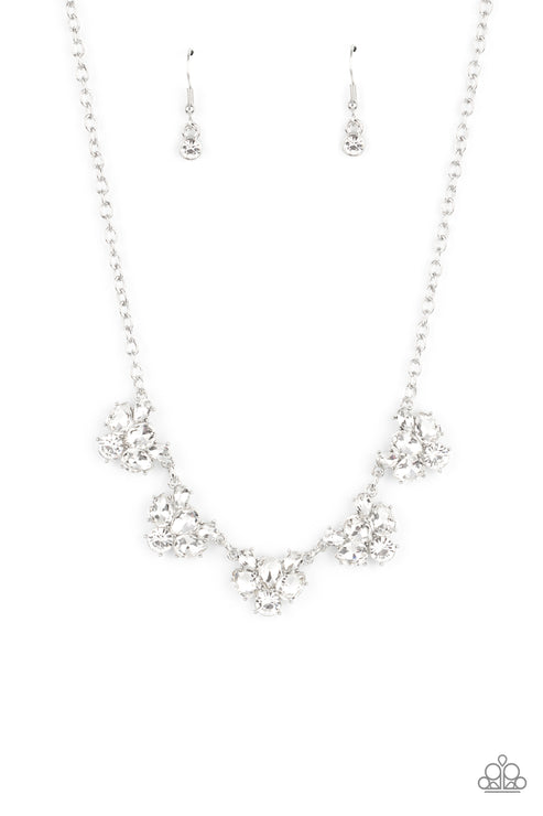 Featuring round and teardrop cuts, white rhinestones delicately link into a sparkling statement piece that results into an envious glow below the collar. Features an adjustable clasp closure.